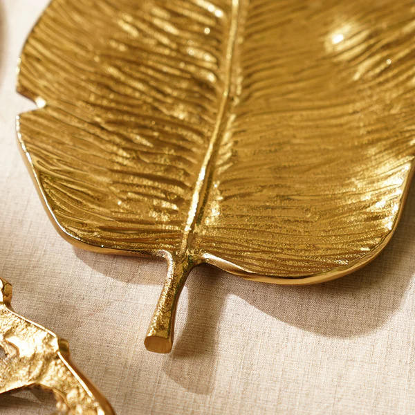 Gold Leaf Serving Platter Decorative Home Kitchen Table Top Dish Platter