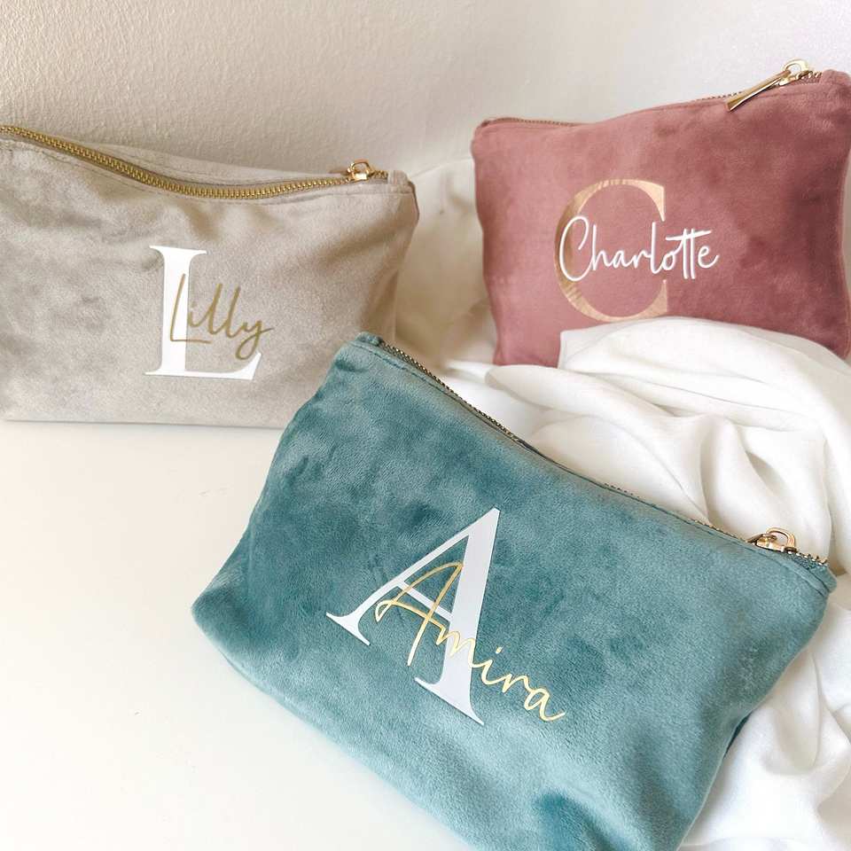 Gold Logo Velvet Makeup Bag Women 10-Inch Zipper Travel Toiletry Bag 5 Colors for Bridesmaid Wedding Engagement Cosmetic Pouch
