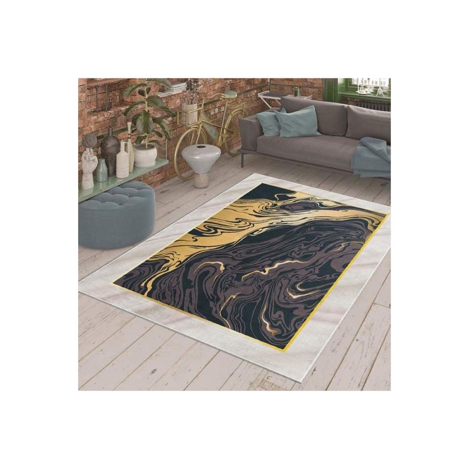 Gold Marble Flattened Weave Carpet Digital Printed Fluffy Rectangle for Bedroom and Hallway Decor for Teens