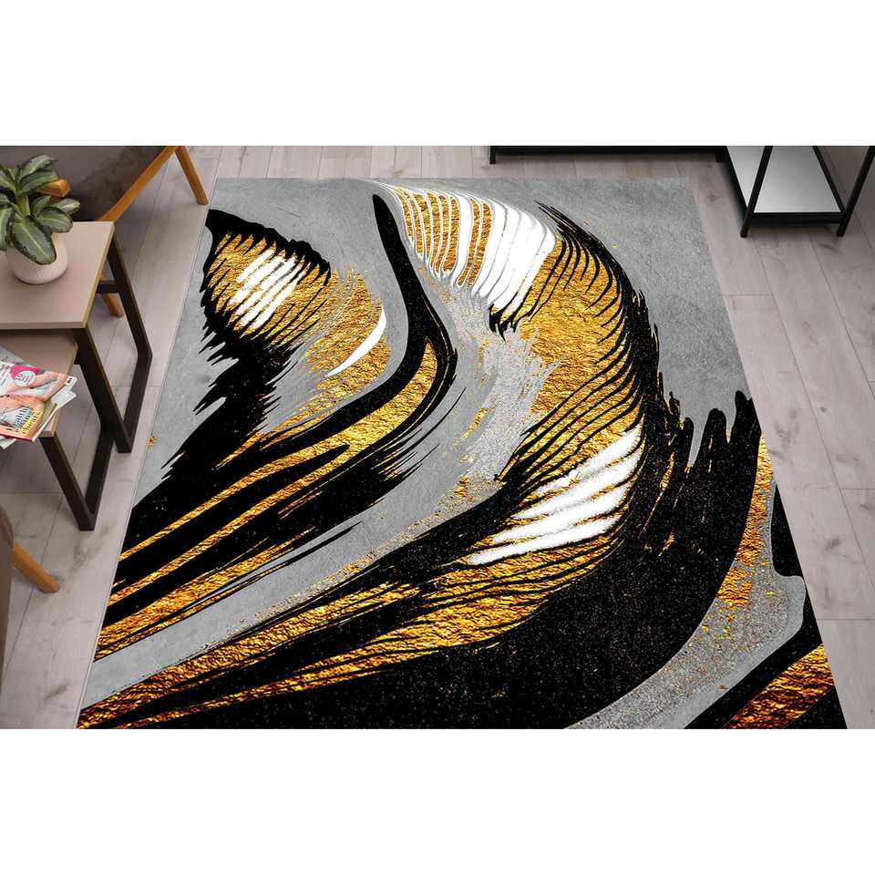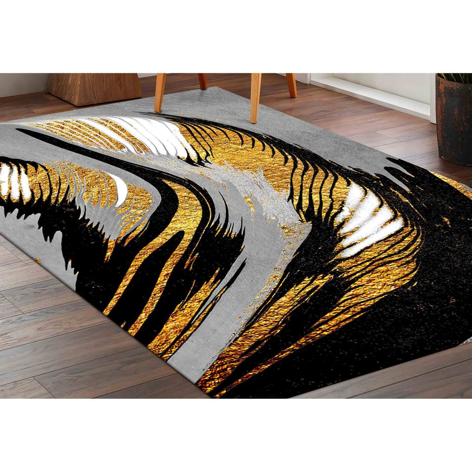 Gold Marbling Rug: Modern Salon Rug, Anti-Slip Carpet,Chenille Rug