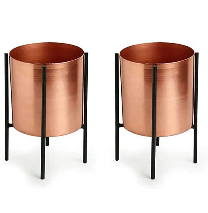 Gold Metal Decorative Flower Baskets Planter With Stand for Home 2 Sizes Floor Flower Pot For Garden Decor