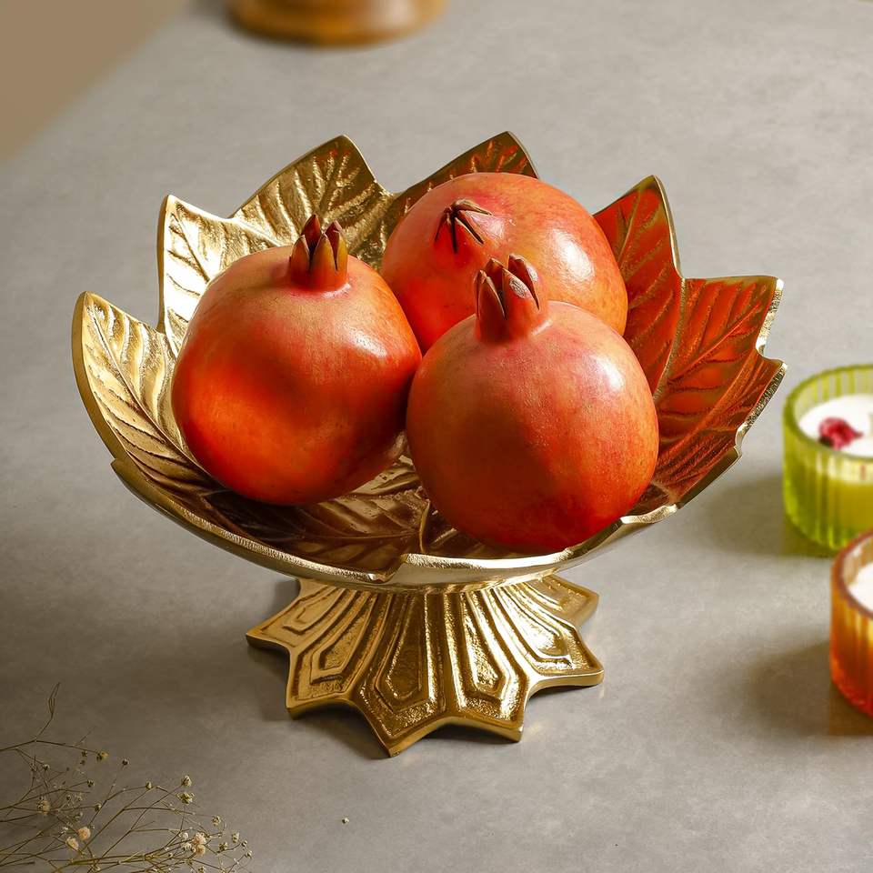 Gold Metal Decorative Fruit Bowl Stand Elegant Centerpiece for Dining Table, Coffee Table Festive Home Decor