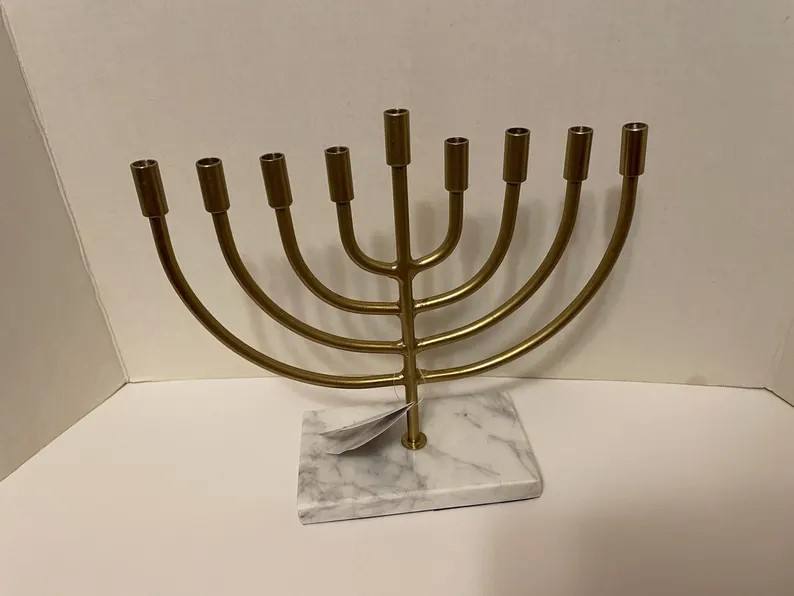Gold Metal Menorah Tall Classic Branch Design Traditional Jewish Festival Religious Home Decor