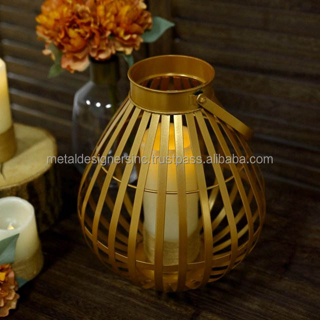 Product name:Gold Metal Open Weave Basket Candle Lantern Indoor/Patio Centerpiece