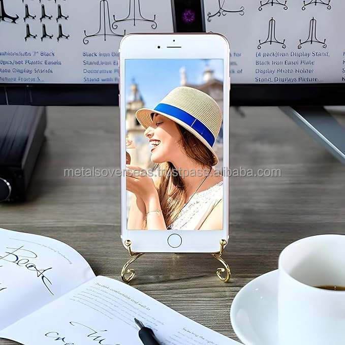 Gold Metal Wire Display Easel for Plates and Bowls Small Elegant Tabletop Display Stand for Photos and Artwork