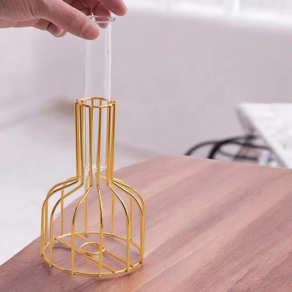 Gold Metal Wire Vase Elegant and Modern Decorative Flower Holder Perfect for Home Office Tabletop Decor From India