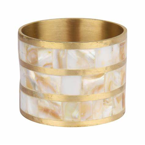 Gold Mother of Pearl Inlay Napkin Rings MOP Brass Napkin Ring with Plating for Dining Table Decor Stocked Feature for Partying