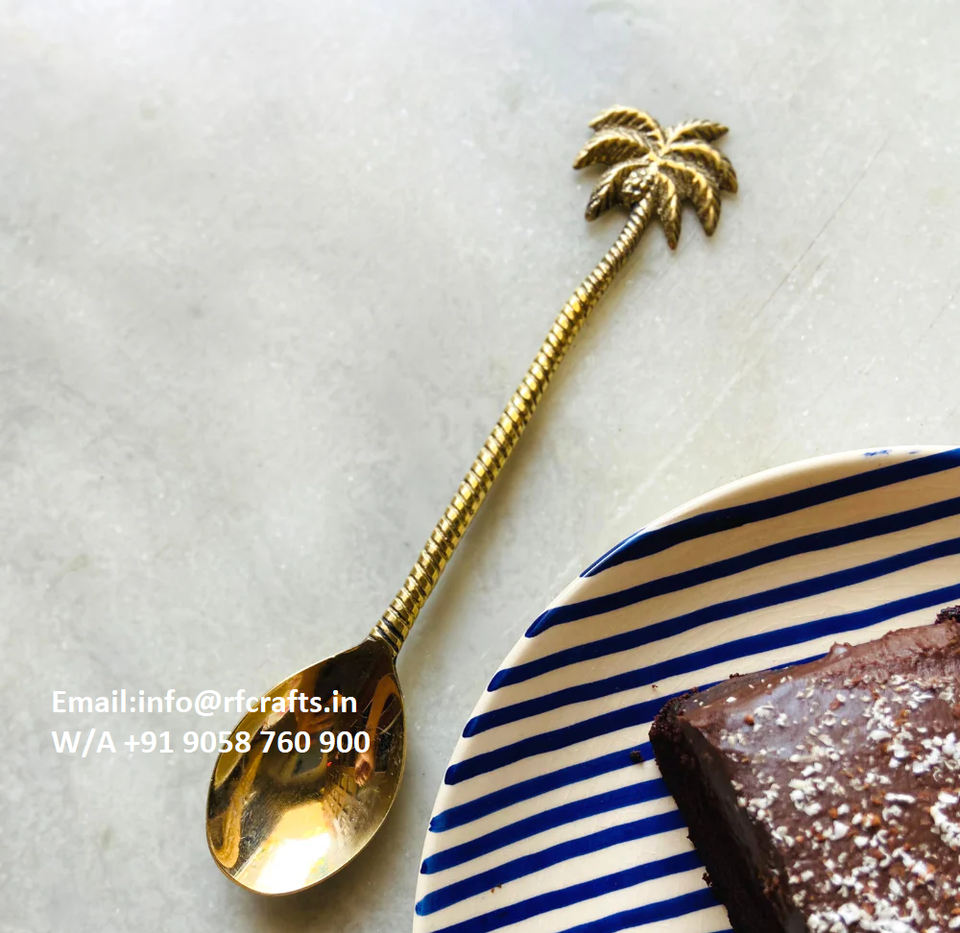 Gold Palm Tree Handle Dessert Spoon Stainless Steel Coffee & Tea Spoon Flatware for Special Occasions