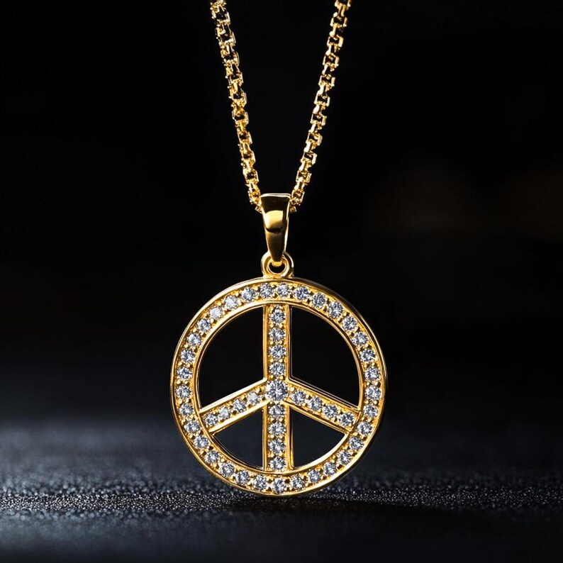 Gold Peace Sign Pendant with Moissanite Stones for Men and Women