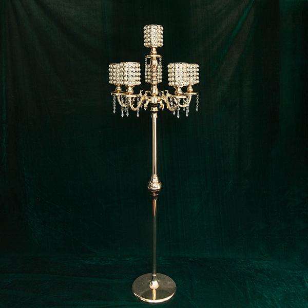 Gold Pearl Beaded Metal Floor Candelabra Iron & Aluminium Table Centerpiece with Crystal Pendants for Weddings