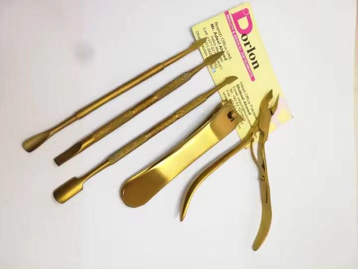 Gold Plasma Nail Care Tools Cuticle Pusher Custom Logo Nail Nipper Stainless Steel Clipper Cutter Manicure Pedicure Tools Kit