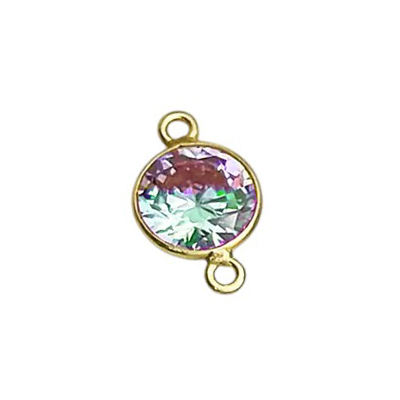 Gold Plated 925 Sterling Silver CZ Round Bezel Pink Tourmaline Cz Charms Jewelry Making Tourmaline Cz Bulk Wholesale Suppliers