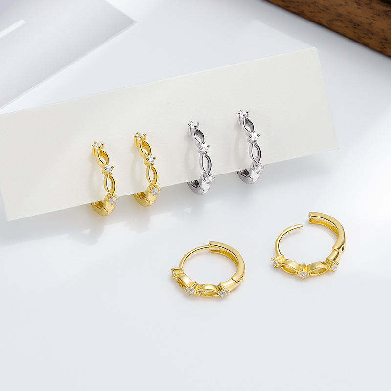 Gold Plated 925 Sterling Silver Cubic Zirconia Hoop Earrings Women Minimalist Diamond Style Huggie Wholesale Jewelry