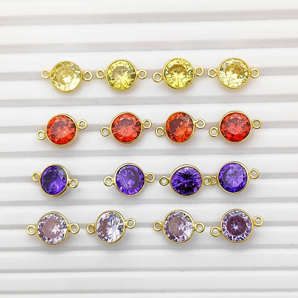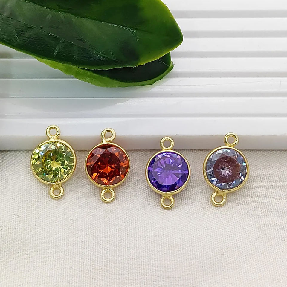 Gold Plated 925 Sterling Silver Garnet CZ Round Bezel Connector Charms Jewelry Making Link Cz Charm Bulk Wholesale Suppliers