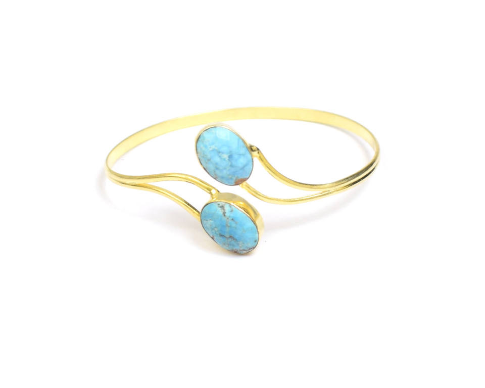 Gold Plated Turquoise Gemstone Sterlingsilver Adjustable Bangle
