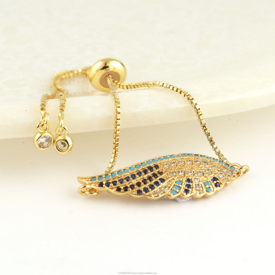 Gold Plated Angel Wing Bracelet Micro Pave Zircon Adjustable Bolo Chain Bracelet Jewelry