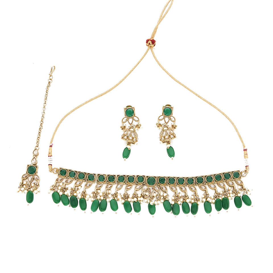 Gold Plated Antique Choker Necklace Jewelry Set for Woman 210681 Available at Reasonable Price