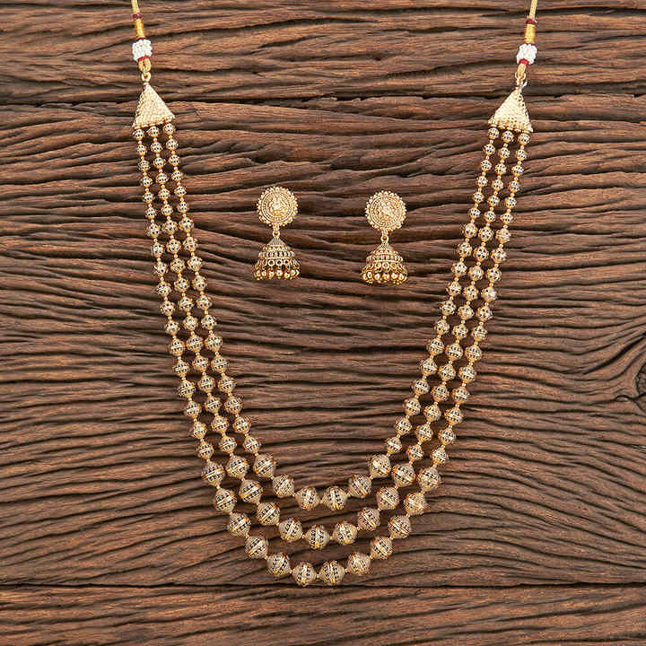 Gold Plated Antique Plain Gold Long Necklace Set 216808 With Arabic Jewellery Look in Fashion Jewelry