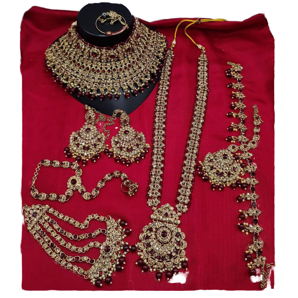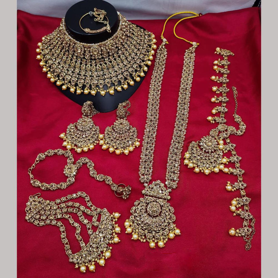 Heavy Gold Finish Austrian Stone Necklace Set for Brides Glamorous Indian Wedding Jewelry Collection