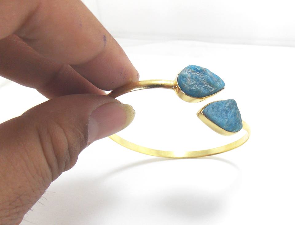 Gold-Plated Boho Style Fashion Bangle Handmade Natural Druzy Gemstone Wire Wrapped Birthstone Statement Bangles
