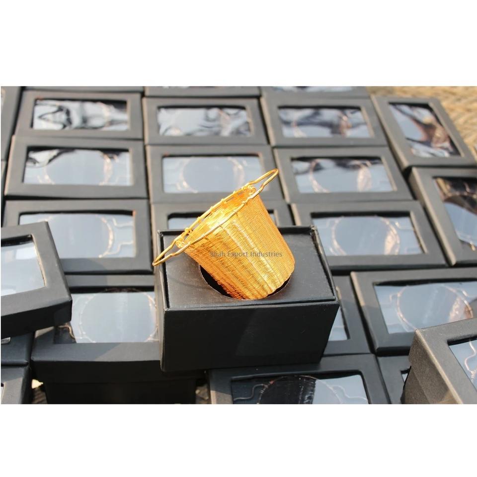 Gold Plated Brass Basket Tea Infuser With Double Side Handle Handwoven Brass Tea Infuser for Loose Leaf Tea Infuser