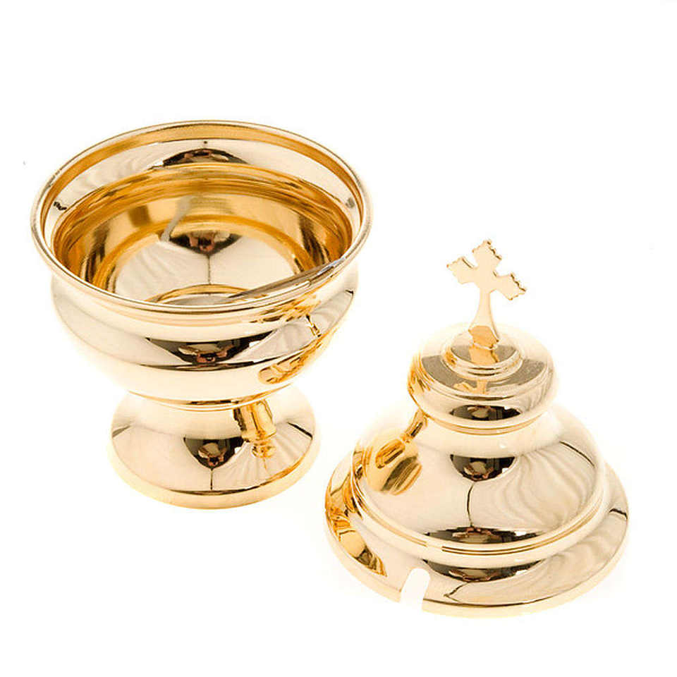 Gold Plated Brass Boat for Traditional Thurible With Cross top For Religious Craft Church Supplies Decorative Item