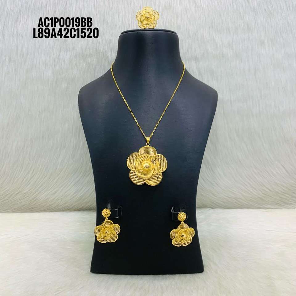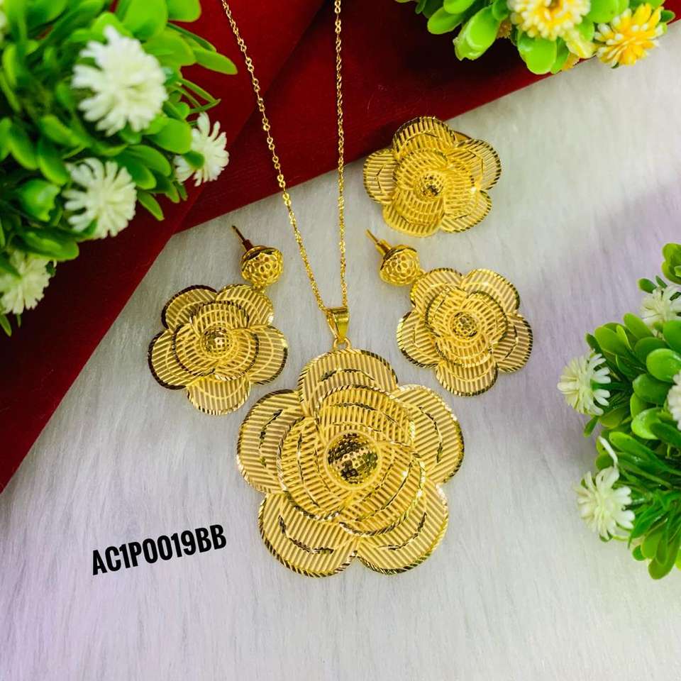 Gold Plated Brass Pendant Set Fashion Jewelry with Box Chain Floral Shape for Party or Wedding Occasions