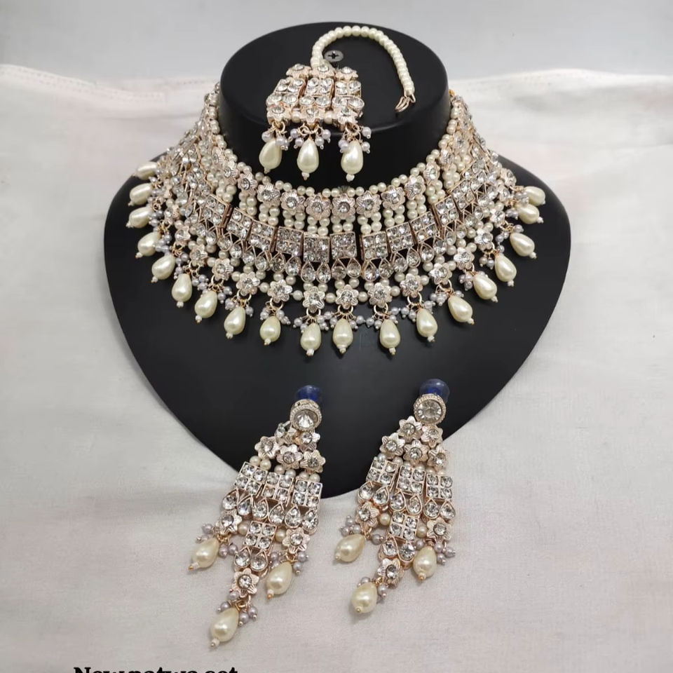 Products Name:Fancy Collection Gold Plated Kundan & Pearl Necklace Set