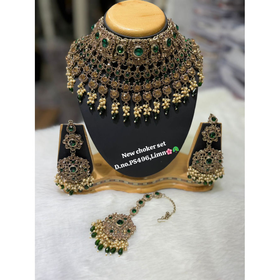 Products Name:Gold-Plated Bridal Shadow Choker Set with Earrings & Maang Tikka