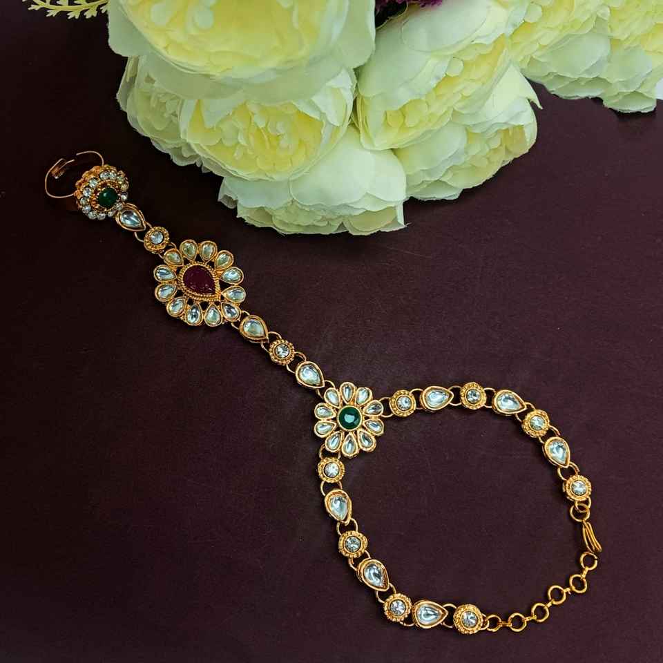 Gold Plated Crystal Kundan Finger Ring Link Chain Wedding Bridal Bracelet Hand Harness Slave Gift Jewelry