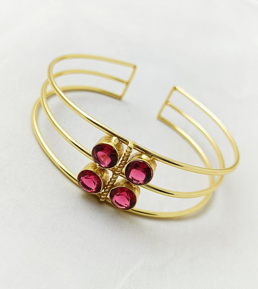 Gold-Plated Cuff Bracelet with Pink Gemstones - Elegant and Stylish Jewelry for Women