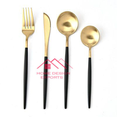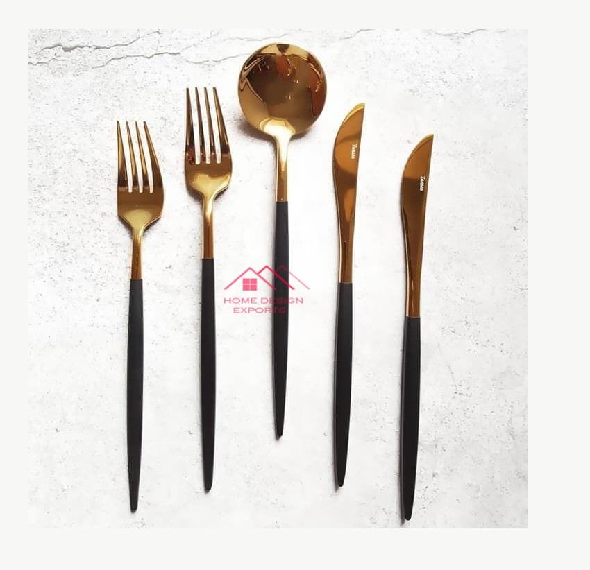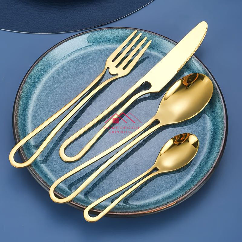 Gold Plated Cutlery Stainless Steel Flatware Set for Dining Table Uses Good Quality Luxury Metal Reusable