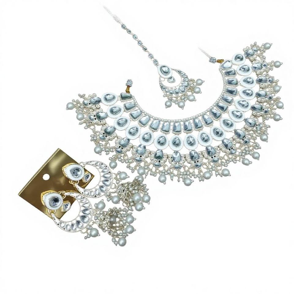 Products Name:Fancy Collection Gold Plated Kundan & Pearl Necklace Set