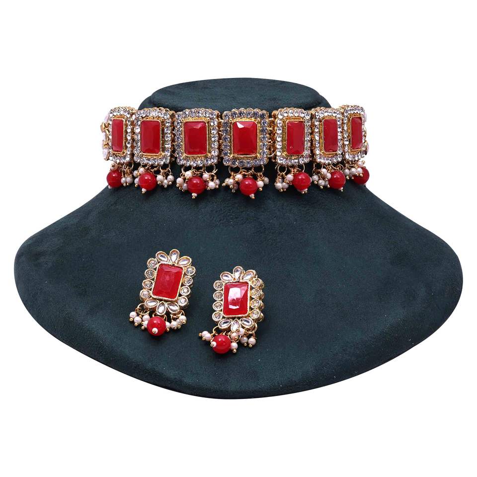 Gold Plated Fashion Choker Necklaces, Kundan Stone Necklaces, Pearl Choker Necklaces Set, Traditional Floral Design Jewelry Set.
