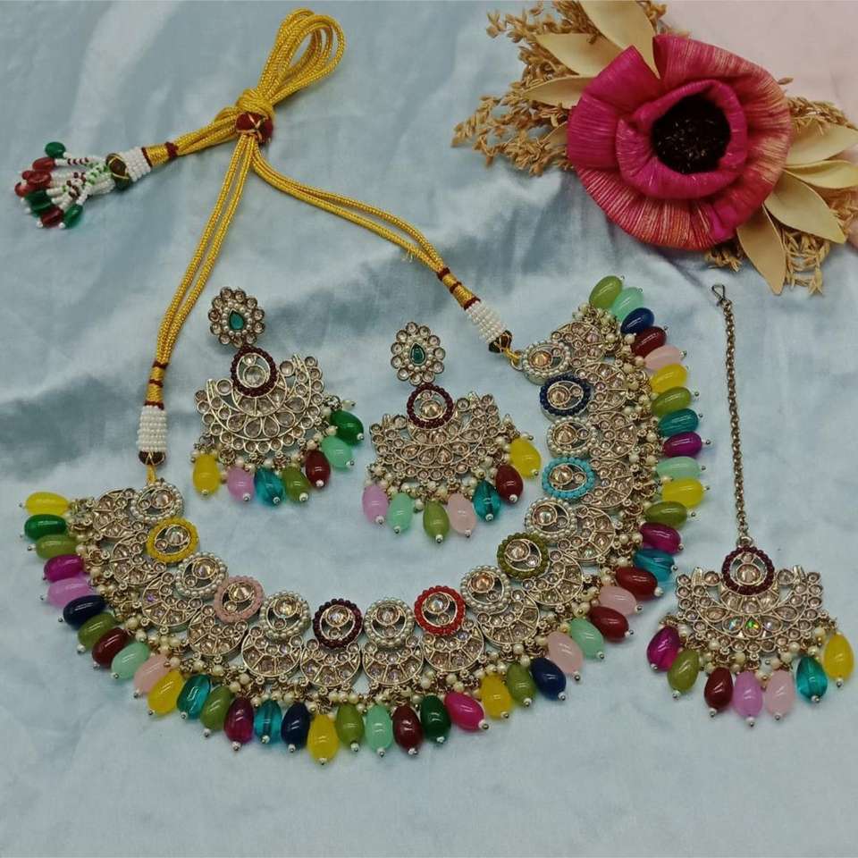 Gold Plated Fashion Jewelry Set with Crystal Stone and Pearls Elegant Necklace Set for Women for Wedding Party and Festive Wear