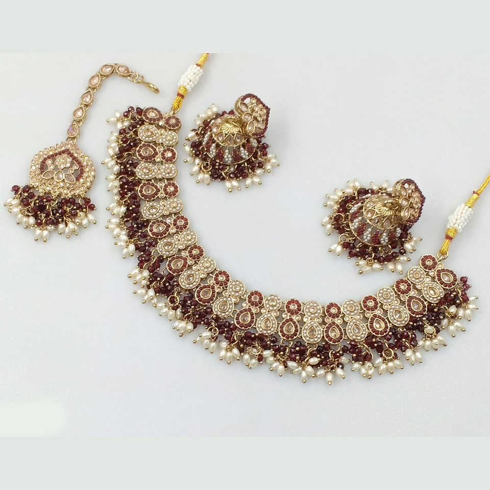 Gold Plated Fine Jewelry Set 12881115MR Necklace with Crystal Stone and Pearls Luxurious 12881115MR Necklace