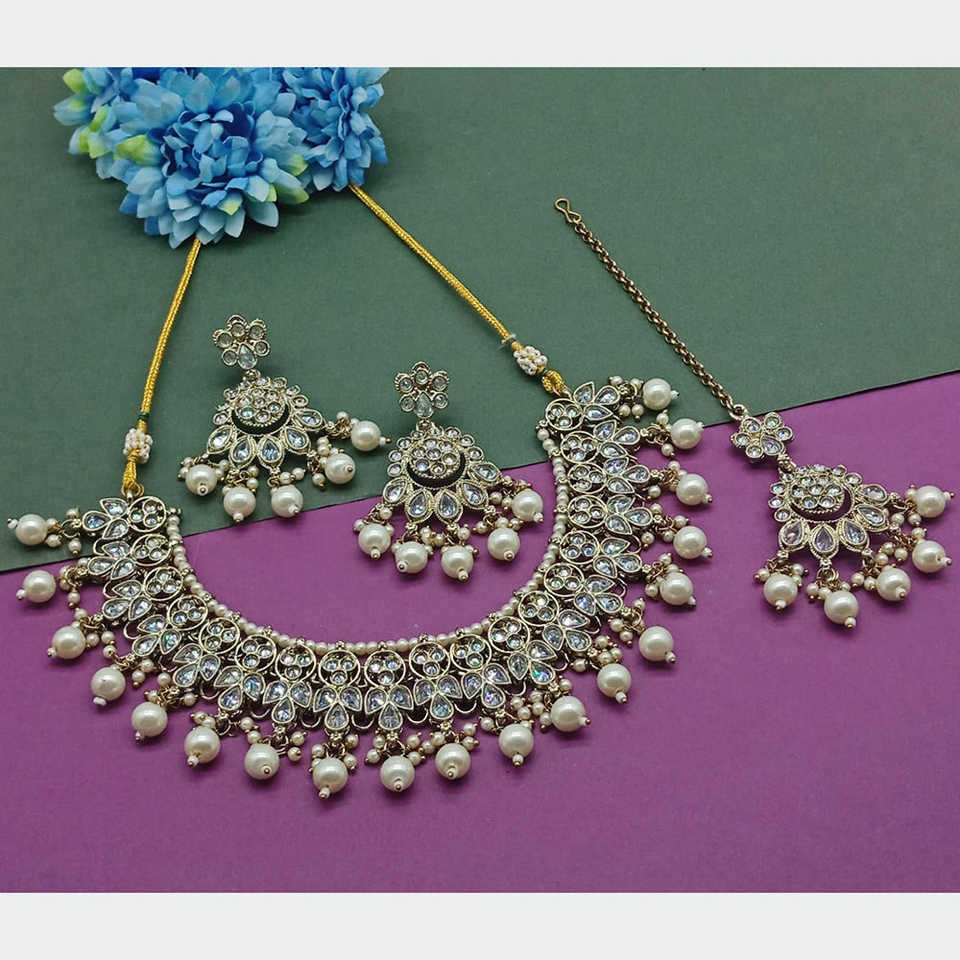 Gold Plated Fine Jewelry Set with Crystal Stone and Beads 10581247WH Necklace