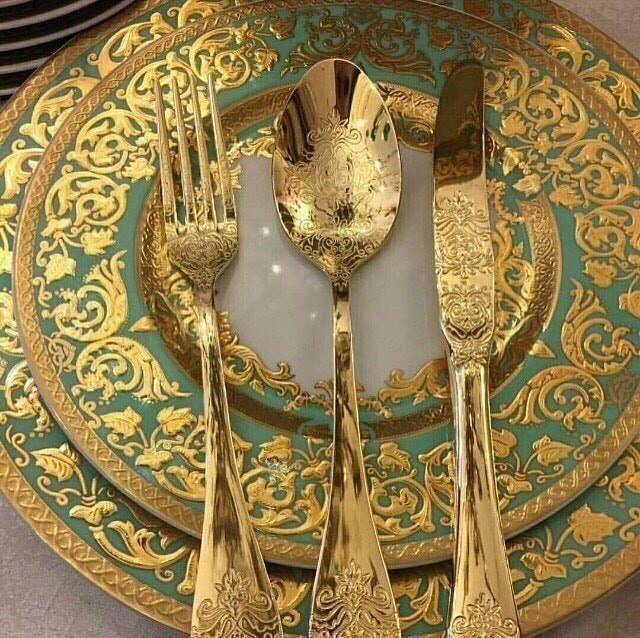 Gold Plated-Flatware Silverware Stainless Steel Cutlery Sets Multipurpose Use for Home Kitchen Restaurant Hotel Tableware