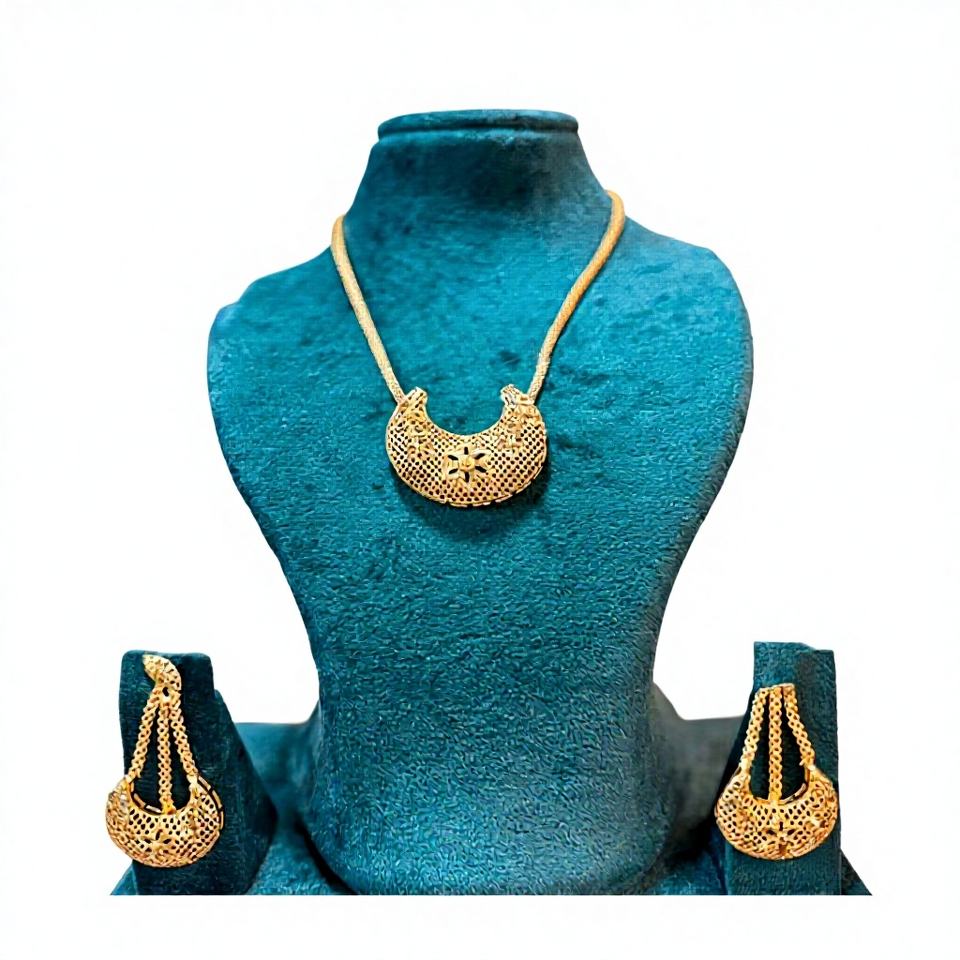 Gold Plated Floral Pendant Necklace Set with Stud Earrings | Indian Jewelry Wholesale Supplier Model 23275