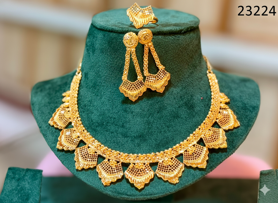 Gold Plated Flower Design Choker Necklace Set with Matching Earrings & Ring | Indian Traditional Wholesale Model 23219