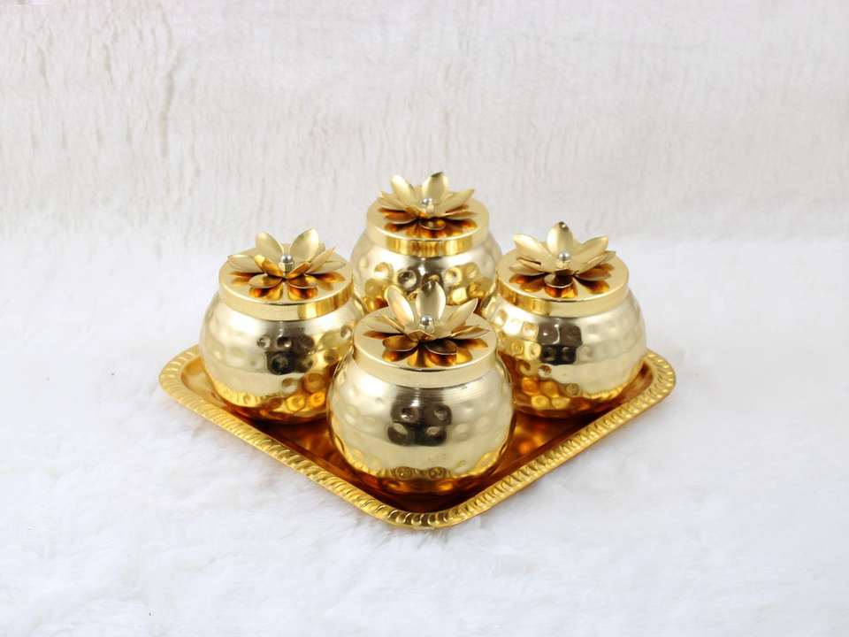 Gold Plated Flower Design Dry Fruit Box with Lid Elegant Table Gift Container
