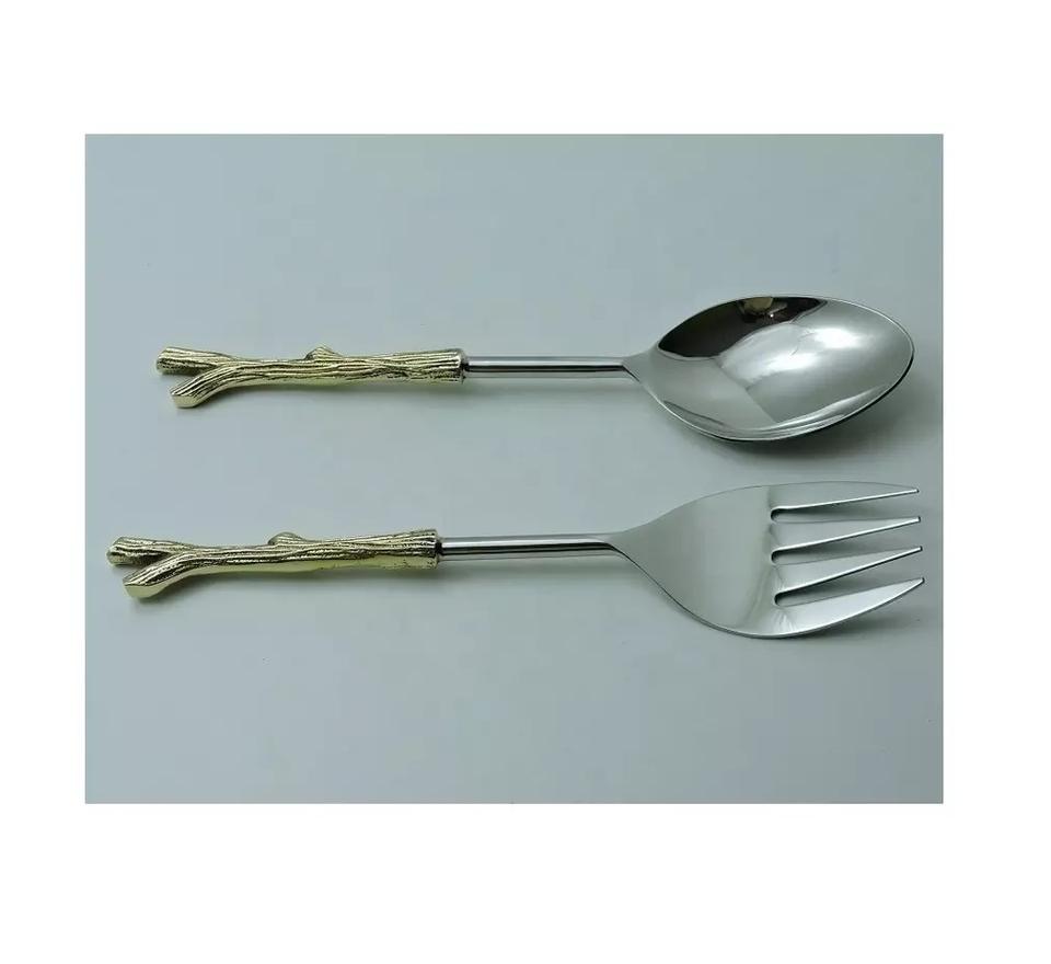 Gold Plated Fork Spoon Food Grade Stainless Steel Salad Server Set Elegant for Wedding Hotel Table Top Food Serving Usage