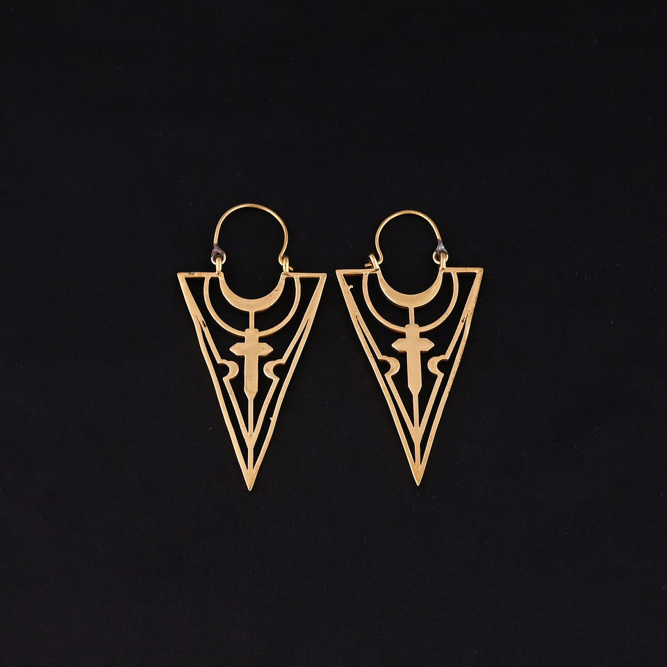 Gold Plated Geometric Tribal Fashion Earrings 57x30MM Size