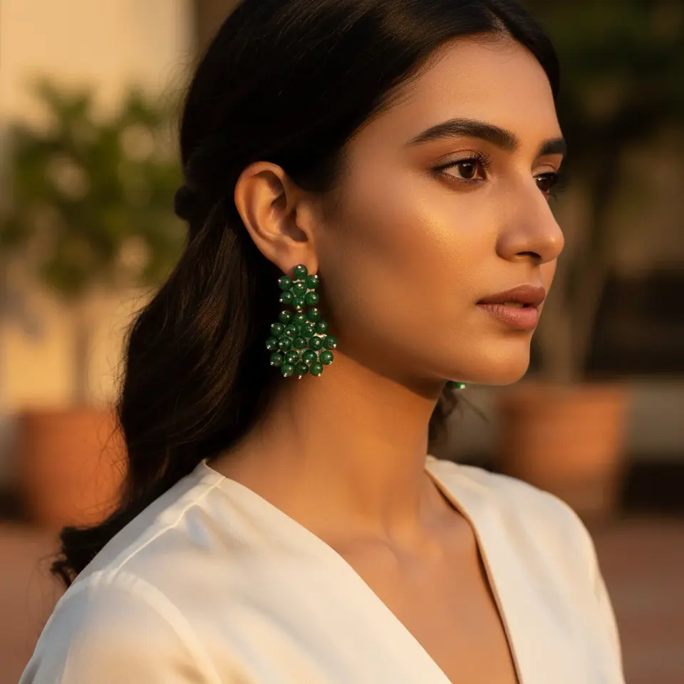 "Gold Plated Green Jade Pendant Earrings for Women"