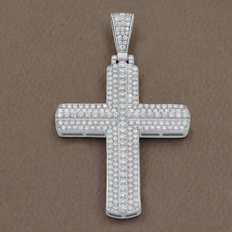 Gold Plated Iced Moissanite Cross Pendant 925 Sterling Silver Hip Hop Jewelry for Party Wedding Birthday Anniversary Gifts