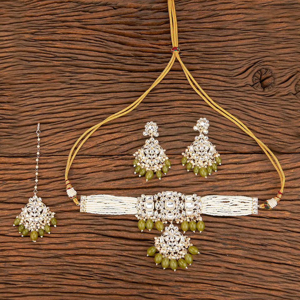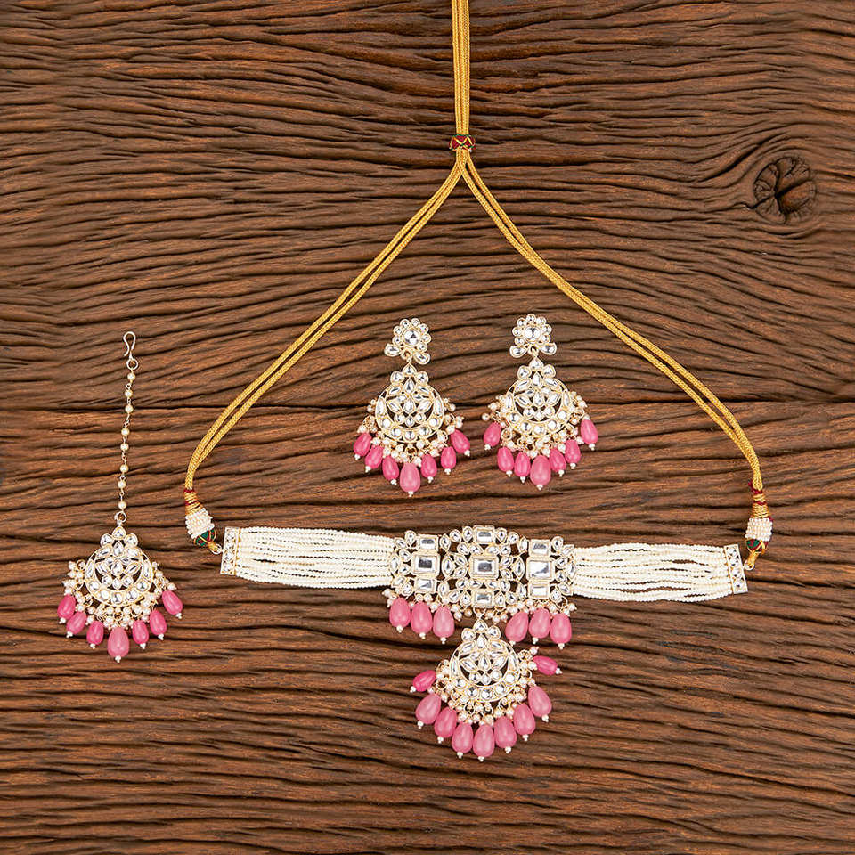 Gold Plated Indo Western Choker Necklace Set With Beads Handmade Jewellery Exporter in India