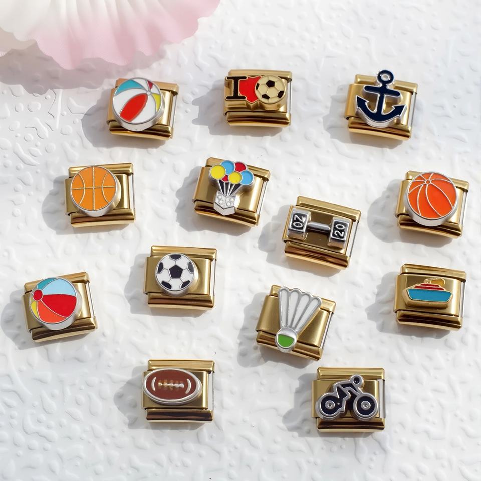 Gold Plated Italian Module Stainless Steel Bracelet Geometric Sports DIY Elastic Italian Charms Alloy Bangles Religious for Gift