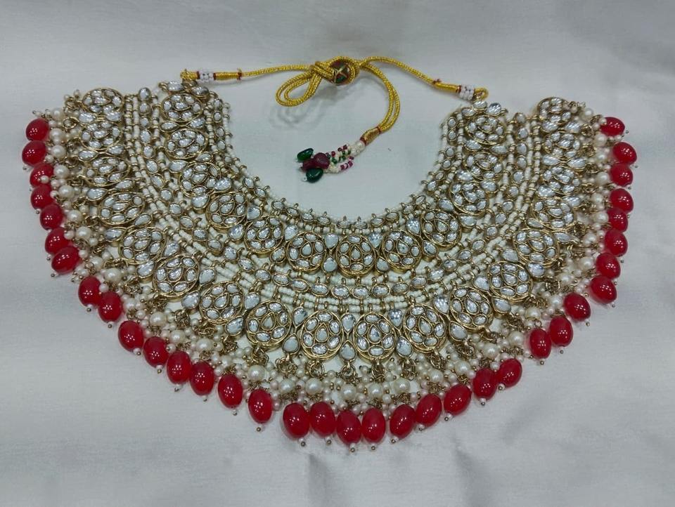 Products Name:Fancy Collection Gold Plated Kundan & Pearl Necklace Set