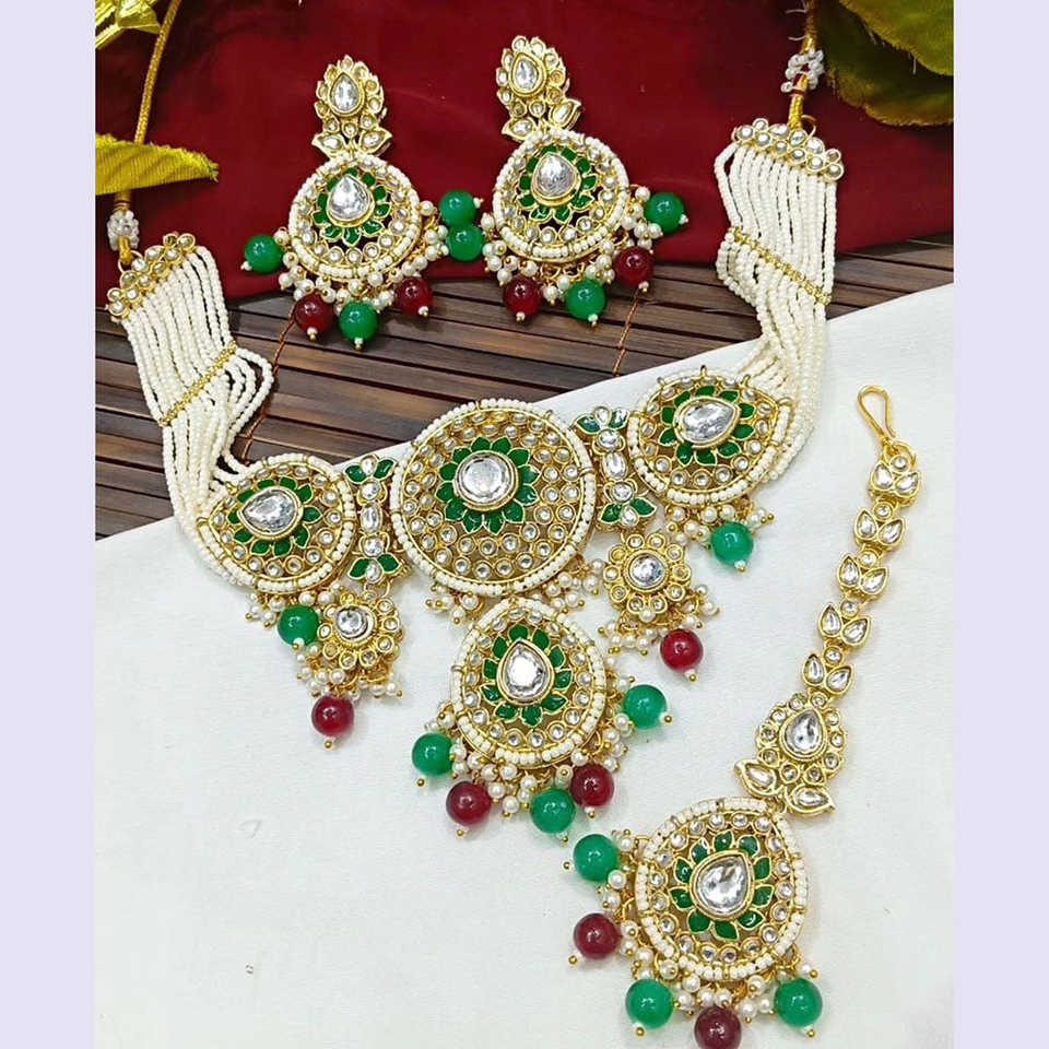 Gold Plated Kundan Stone Beads and Pearls Meenakari Necklace Set Fashion Jewelry 10581295MGR