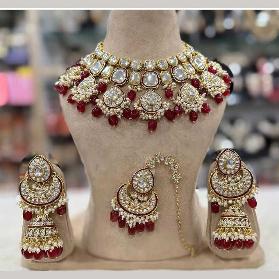 Gold Plated Kundan Stone Fashion Jewelry Necklace Set 10581144RD